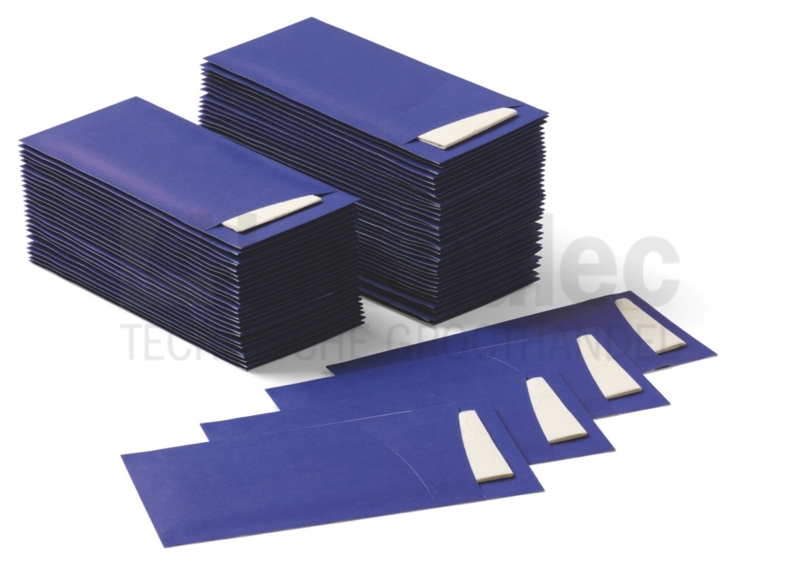 Blauwe bestekzakjes, elk voorzien van servet. Verpakt per doos à 100 stuks.