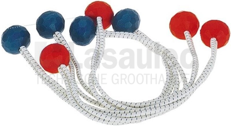Elastische binders met ballen: Deze binders hebben aan beide uiteinden een kunststof bal, wat het bevestigen vergemakkelijkt. Beschikbaar in lengtes van 30 cm tot 60 cm, eveneens verpakt per 4 stuks.