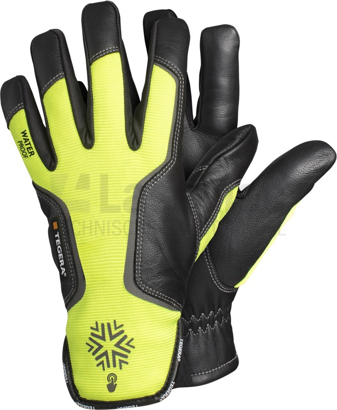 Lederen handschoen, winter gevoerd, 0,7 mm volnerf geitenleer van topkwaliteit, spandex, fleece, Thinsulate™ 40g, Cat. II, versterkte wijsvinger, hoge zichtbaarheidskleur, touchscreen, waterdicht, reflector, voor algemene werkzaamheden