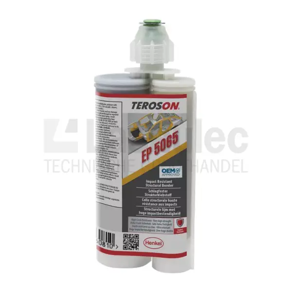 TEROSON EP 5065 is een 2K-lijm op basis van epoxy zonder oplosmiddelen Het heeft een hoge initiële sterkte bij hoge en lage temperaturen (van -40° tot +80°C) Eenmaal uitgehard, is het hard maar niet broos. Wordt gebruikt bij schadeherstel voor het structurele verlijmen van metalen onderdelen waar hoge crasheisen worden gesteld (bijv. plaatwerkstaal met en zonder E-coat, verzinkte plaat en aluminium). Het beschermt tegen corrosie.