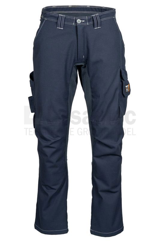 Versterkte gulp en stretch in het kruisgedeelte. Steekzakken. Cargozak met klep, telefoonzak, pennen zakken en verdekte sleutelring. Liniaalzak met versterkte onderzijde. Voorgevormde knieën met in hoogte verstelbare knievakken aan de binnenzijde. Stretch aan achterzijde. Achterzakken met klep.