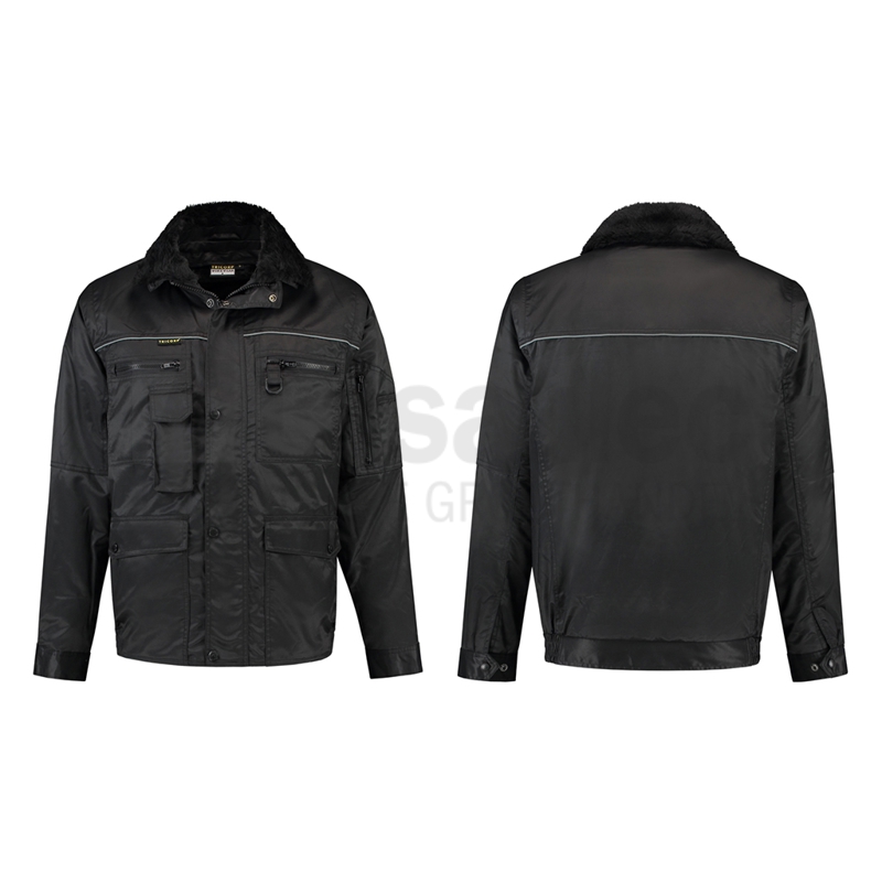 All-season pilotjack voorzien van reflectiepiping voor en achter, vuil- en waterafstotend, twee afsluitbare borstzakken waarvan één met telefoonzak, twee steekzakken met afsluitbare klepzakken, afritsbare mouwen, uitneembare bontvoering, afsluitbare zak met twee pennenzakken, kraag met afritsbare bontvoering, deels elastische boord voor extra draagcomfort.