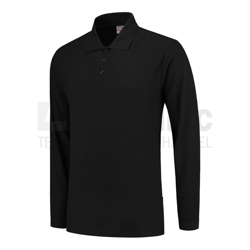 Duurzaam, vorm- en kleurvast poloshirt voorzien van lange mouwen, manchetten aan mouweinden, 3 knoopssluiting, recht model met zij-splitjes en neck tape.