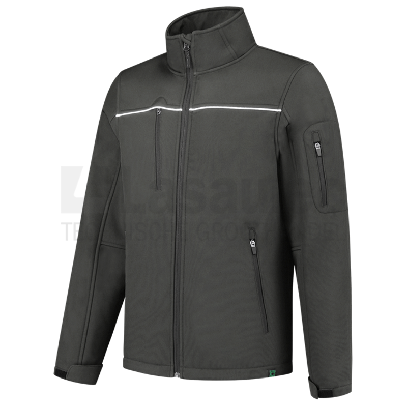 De Softshell Luxe Rewear is een comfortabele jas met stretch die ook waterafstotend en winddicht is. Deze circualire softshell bestaat uit 100% recycled polyester. Het gebruik van een PU-tussenlaag zorgt ervoor dat het ademend vermogen optimaal blijft, waardoor de drager minder snel zal zweten. Verhoogt de zichtbaarheid dankzij de reflectiepiping op de borst. De werkjas is verder voorzien van een gelamineerde rits voor een luxe uitstraling. De onderzijde van de jas is middels een elastisch koord met stoppers te verstellen. Ook de manchetten zijn te verstellen met klittenband. Aan de voorzijde is de jas voorzien van vier zakken. Ook heeft de jas een binnenzak die  geschikt is voor het opbergen van een smartphone.