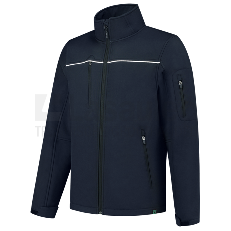 De Softshell Luxe Rewear is een comfortabele jas met stretch die ook waterafstotend en winddicht is. Deze circualire softshell bestaat uit 100% recycled polyester. Het gebruik van een PU-tussenlaag zorgt ervoor dat het ademend vermogen optimaal blijft, waardoor de drager minder snel zal zweten. Verhoogt de zichtbaarheid dankzij de reflectiepiping op de borst. De werkjas is verder voorzien van een gelamineerde rits voor een luxe uitstraling. De onderzijde van de jas is middels een elastisch koord met stoppers te verstellen. Ook de manchetten zijn te verstellen met klittenband. Aan de voorzijde is de jas voorzien van vier zakken. Ook heeft de jas een binnenzak die geschikt is voor het opbergen van een smartphone.