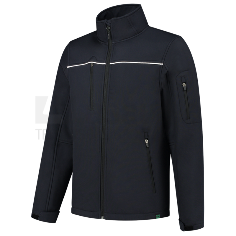 De Softshell Luxe Rewear is een comfortabele jas met stretch die ook waterafstotend en winddicht is. Deze circualire softshell bestaat uit 100% recycled polyester. Het gebruik van een PU-tussenlaag zorgt ervoor dat het ademend vermogen optimaal blijft, waardoor de drager minder snel zal zweten. Verhoogt de zichtbaarheid dankzij de reflectiepiping op de borst. De werkjas is verder voorzien van een gelamineerde rits voor een luxe uitstraling. De onderzijde van de jas is middels een elastisch koord met stoppers te verstellen. Ook de manchetten zijn te verstellen met klittenband. Aan de voorzijde is de jas voorzien van vier zakken. Ook heeft de jas een binnenzak die  geschikt is voor het opbergen van een smartphone.