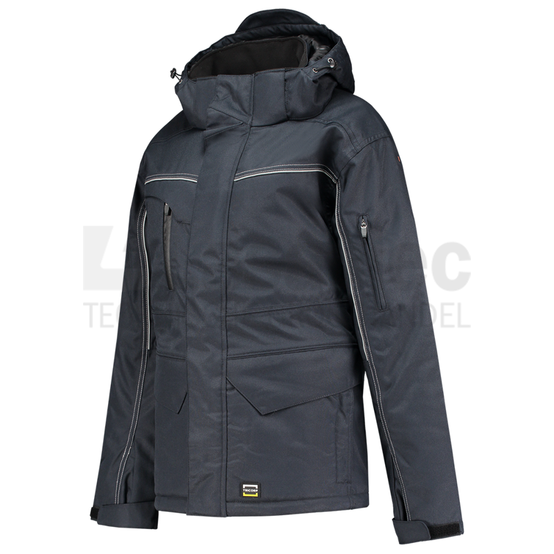 De Midi Parka Canvas is een lichtgewicht jack. Deze werkjas is volledig gewatteerd, wind- en waterdicht en ademend conform de norm EN 343, klasse 3/3. De parka is uitgevoerd met getapete naden, waterafstotende ritsen en tricot windvangers in de mouwen. Verder beschikt deze populaire Tricorp jas over verstelbare manchetten (d.m.v. klittenband), een gelamineerde blokrits met stormflap, een verlengd achterpand dat in en uit te klappen is en een baardkapje. De gewatteerde capuchon van de Midi Parka Canvas is afritsbaar. De reflectie piping zorgt voor extra zichtbaarheid. Ook heb je voldoende opbergruimte met deze jas, dankzij de 4 buitenzakken en 2 binnenzakken waarvan er één geschikt is voor je telefoon.