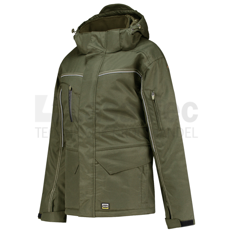 De Midi Parka Canvas is een lichtgewicht jack. Deze werkjas is volledig gewatteerd, wind- en waterdicht en ademend conform de norm EN 343, klasse 3/3. De parka is uitgevoerd met getapete naden, waterafstotende ritsen en tricot windvangers in de mouwen. Verder beschikt deze populaire Tricorp jas over verstelbare manchetten (d.m.v. klittenband), een gelamineerde blokrits met stormflap, een verlengd achterpand dat in en uit te klappen is en een baardkapje. De gewatteerde capuchon van de Midi Parka Canvas is afritsbaar. De reflectie piping zorgt voor extra zichtbaarheid. Ook heb je voldoende opbergruimte met deze jas, dankzij de 4 buitenzakken en 2 binnenzakken waarvan er één geschikt is voor je telefoon.