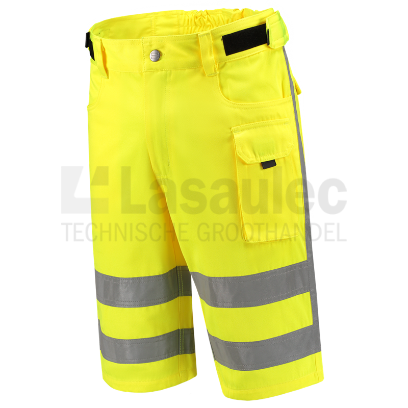 High Visibility, Reflectiestriping, Twill, Katoen/Polyester, Uni color, Broeken, EN ISO 13688, EN ISO 20471:2013+A1:2016 Klasse 1, Rijkswaterstaat, 40 °C, Zichtbaarheid, RWS, Duimstokzak, Elastische taille voor extra draagcomfort, Klittenband voor verstelbare taille, Smartphonezak, Korte broek