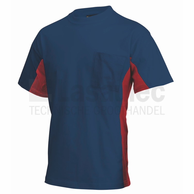 T-shirt voorzien van ronde hals, korte mouwen, borstzak, stevige 4-laags ribboord en neck tape.