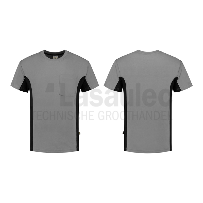 T-shirt voorzien van ronde hals, korte mouwen, borstzak, stevige 4-laags ribboord en neck tape.