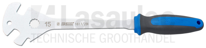 De professionele pedaalsleutel heeft twee openingen van 15 mm die in een hoek zijn geplaatst om de pedalen gemakkelijk te verwijderen, ongeacht de positie van de pedaalas.