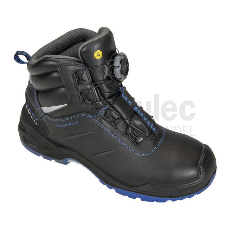 De Baak Hunter is een S3 veiligheidsschoen, bovenwerk van waterdicht en ademend Baakdry met reflecterende applicatie; Boa®-Fit-systeem M4; Textiel penetratiebescherming; Baak® go & relax systeem voor het vasthouden aan de voet, bestaande uit een Baak flex cap & Baak flex zone in het balgebied; Zachte, dempende Baak ESD Softstep binnenzool ademend met hoge vochtopname en -afgifte; antibacterieel; PU/PU zool met Baak flex zone en geïntegreerd H koppelelement; niet strepend; bijzonder slipvast; Gecertificeerd voor orth.Inlegzolen volgens DGUV-regel 112-191; Brede aluminium flex-neus voor goede teenvrijheid; Maat 38-48 / breedte 11.