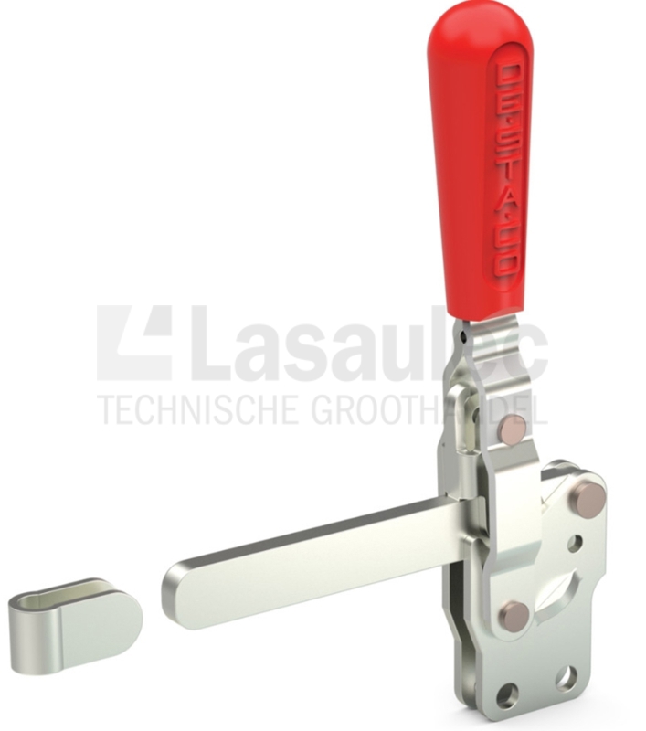 Verticaalspanner voor positioneren, klemmen, spannen en sluiten. Voorzien van rode oliebestendige antislip handgreep, alle delen zijn standaard verzinkt, oliebestendige drukvoet en veiligheidstussenstuk beschermt uw hand.