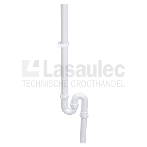 Wasmachineafvoerset bestaande uit S-sifon, 60cm PE buis wit Ø 40mm, klemzadel 40mm M6 en kombidubel M6 x 40mm.