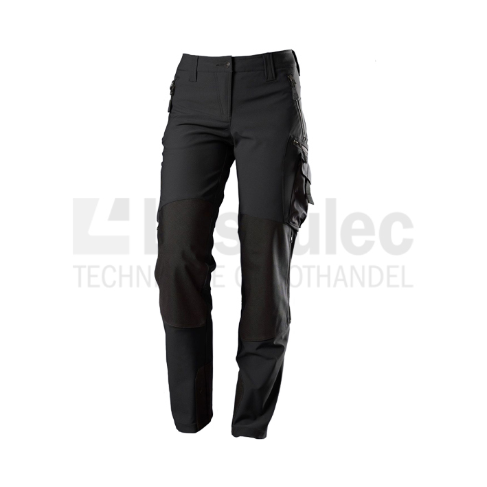 Werkbroek met slank silhouet, damesmodel, elastische tailleband aan de achterkant voor optimale pasvorm, ergonomische snit, 2 zijzakken met ritssluiting, 2 achterzakken, 1 ruime beenzak met ritssluiting en opgezette smartphonezak, D-ring voor bevestigen van accessoires, loshangende dubbele duimstokzak, ergonomisch gevormde broekspijpen, reflecterende elementen in donkergrijs op broekspijpen, Cordura®-kniezakken met ritssluiting en ventilatie-opening.