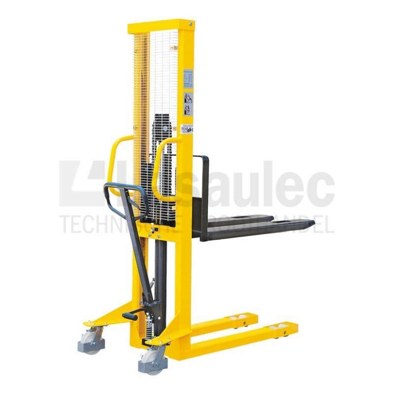 De manuele stapelaar van Xilin is het instapmodel van de manuele stapelaars en verkrijgbaar in 3 hefhoogtes: 1,6 meter, 2,5 meter en 3 meter. De machine is wendbaar en geschikt voor het heffen van lasten tot 1000KG. De manuele stapelaar wordt gebruiksklaar geleverd. Het onderhoudsarme hydraulische systeem staat garant voor een lange levensduur. De gebruiker wordt ten allen tijde beschermd omdat de machine is voorzien van veiligheidsrooster. Met de ergonomische handel is bediening niet alleen eenvoudig maar ook verantwoord. De machine is leverbaar met verschillende masttypen zowel enkel als dubbel. De uitvoering met een dubbel uitvoering heeft een groter hefbereik en een lagere doorrijhoogte.