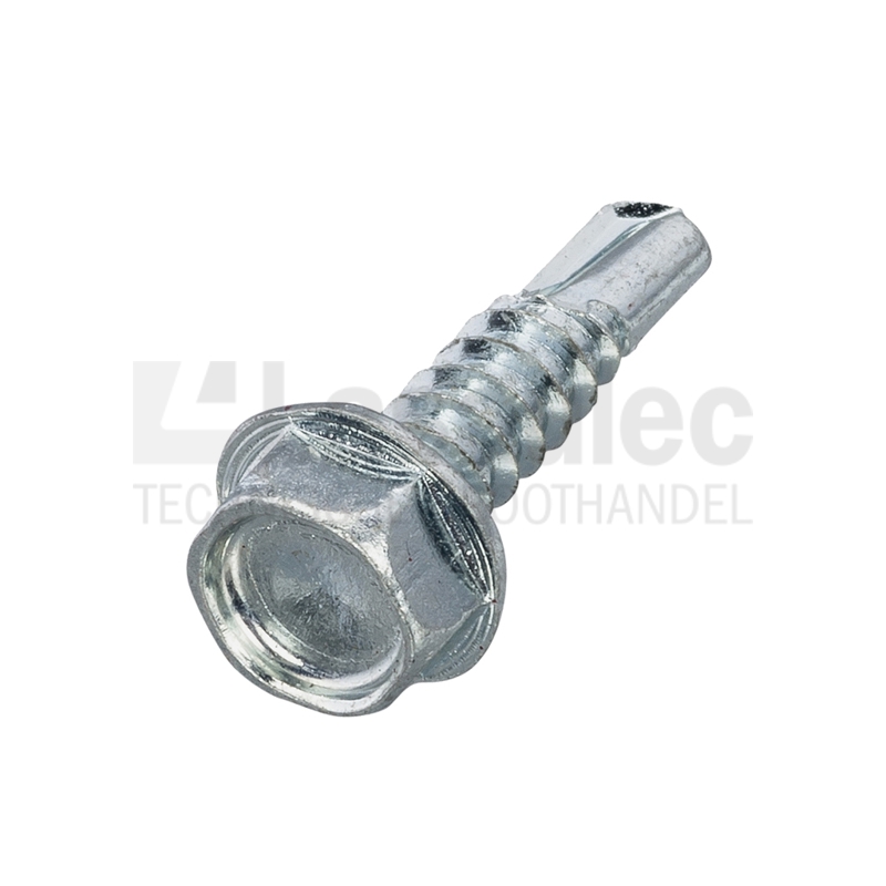 Plaatschroef zeflborend voorzien van zeskantkop.