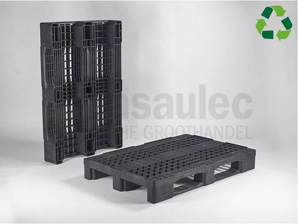 De Euronorm zwaarlastpallet van 1200x800x160 mm in zwart is speciaal ontworpen voor het veilig en efficiënt opslaan en vervoeren van zware ladingen. Deze pallet is voorzien van een gerasterd bovendek en stapelranden rondom met een hoogte van 7 mm, wat zorgt voor extra stabiliteit bij het stapelen. De pallet is uitgerust met 3 sleden, waardoor hij gemakkelijk te hanteren is met een heftruck of palletwagen. Met een eigen gewicht van 18,5 kg is deze pallet statisch belastbaar tot 14.000 kg, dynamisch belastbaar tot 3.500 kg, en heeft hij een stellingbelasting tot 1.000 kg. Gemaakt van gerecycled PE-materiaal, biedt deze pallet een duurzame oplossing voor zware industriële toepassingen.